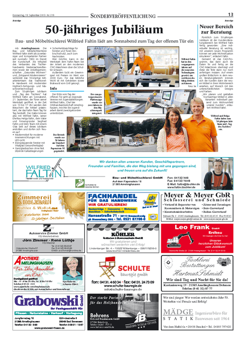 In dieser Rubrik finden Sie aktuelle Berichte der lokalen Presse sowie Ausschnitte aus Fach- und Branchen-Magazinen, die Tischlerei Faltin betreffend oder allgemeine, interessante Fachinformationen zum Thema Tischlerhandwerk.